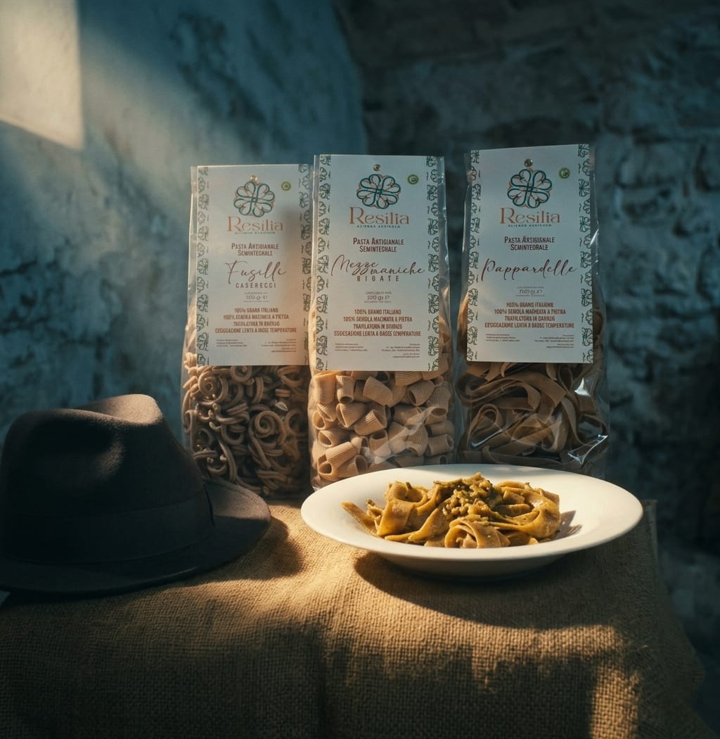 Una selezione di pasta artigianale semintegrale prodotta con lavorazioni tradizionali, Panificio Agricolo Resìlia.